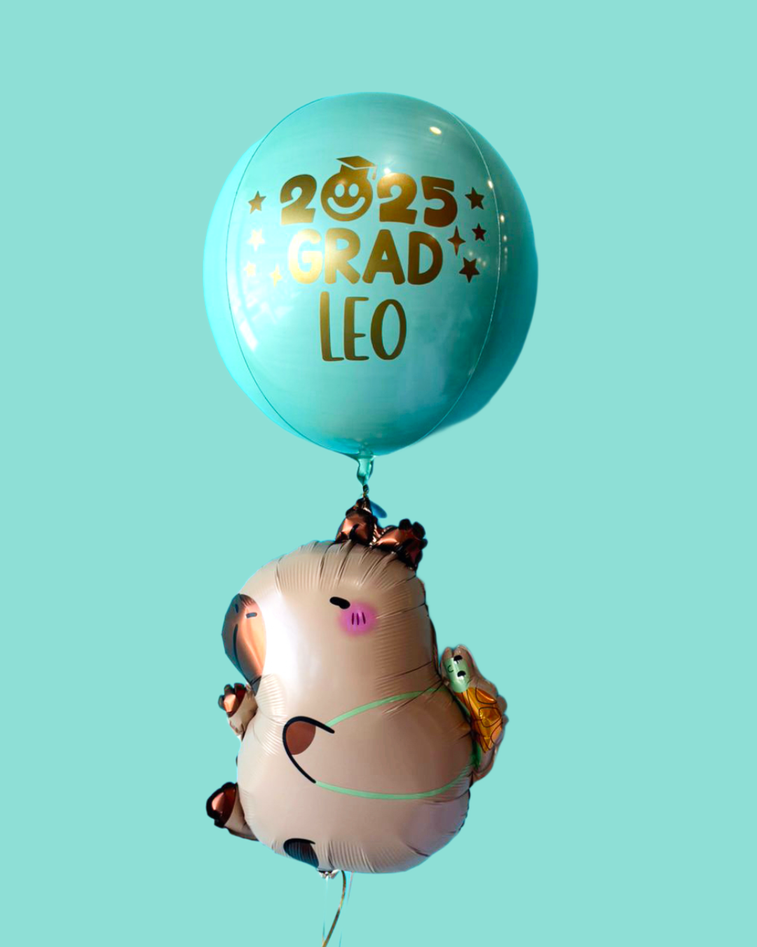Globo orbz color verde menta personalizado de graduación y globo de Capibara.