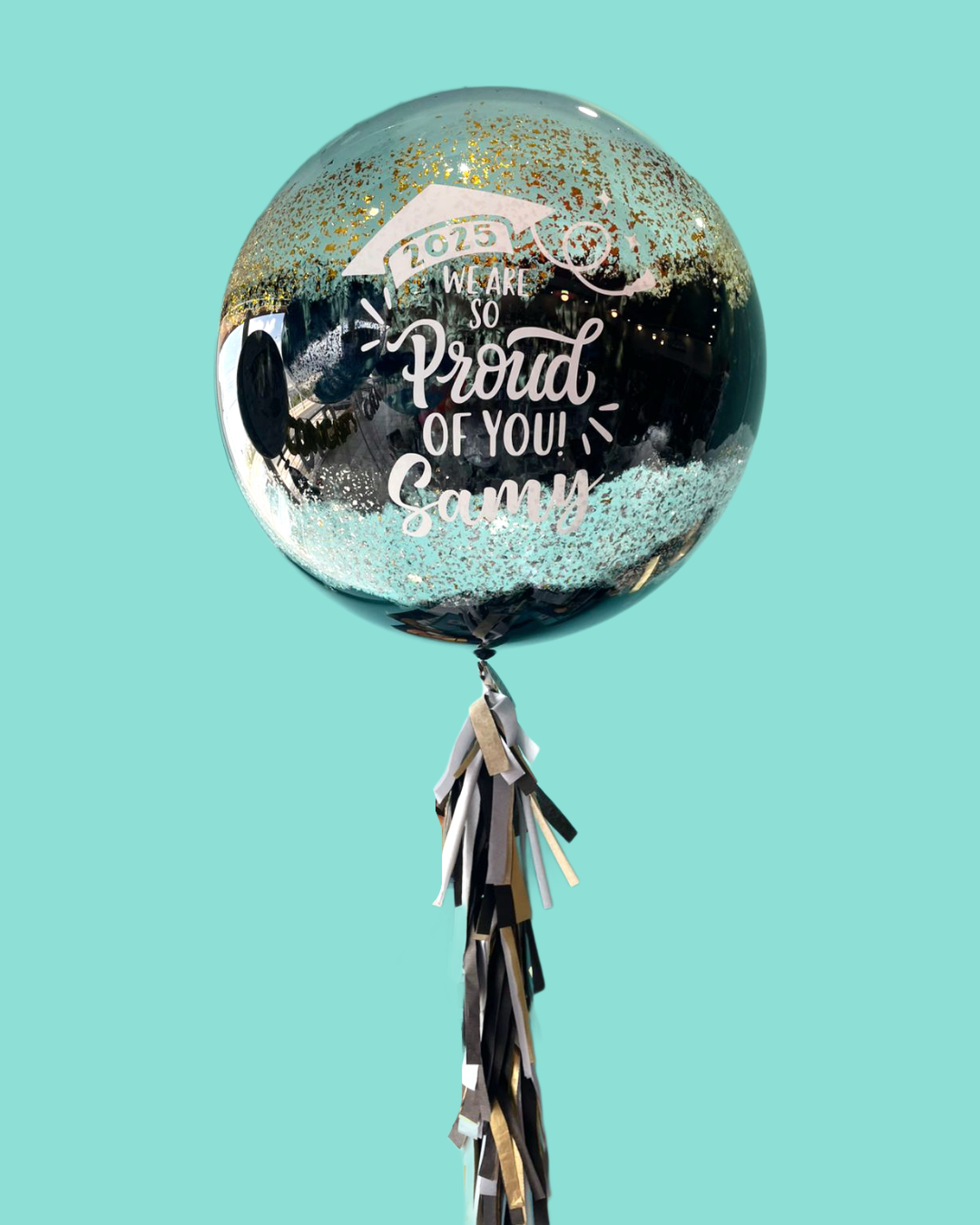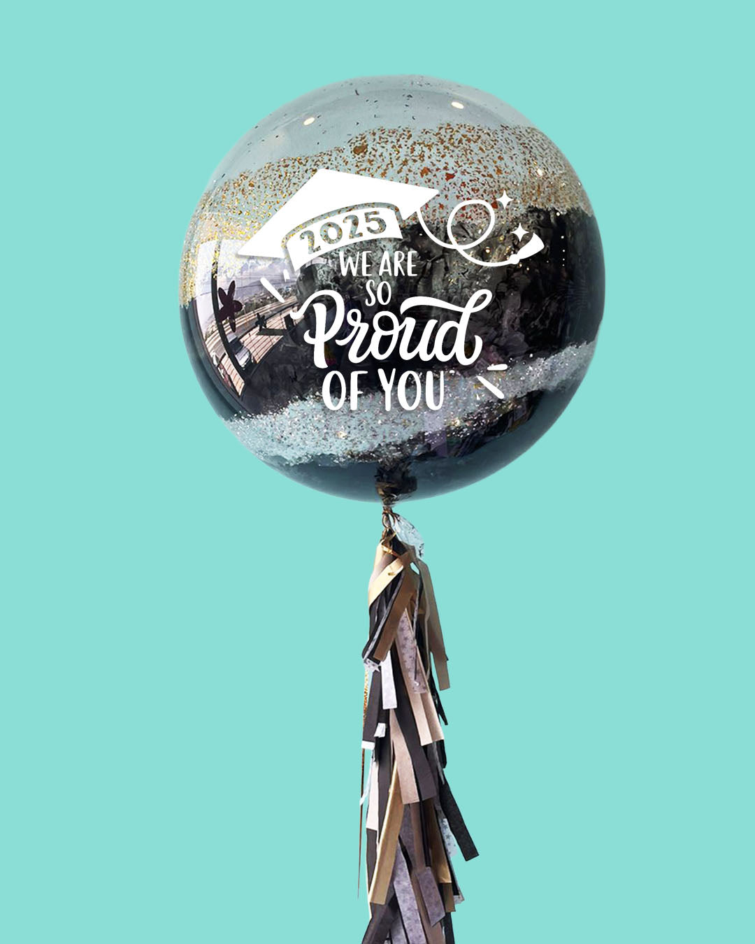 Burbuja personalizada 60 cm con diseño a rayas de graduación